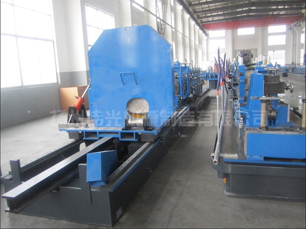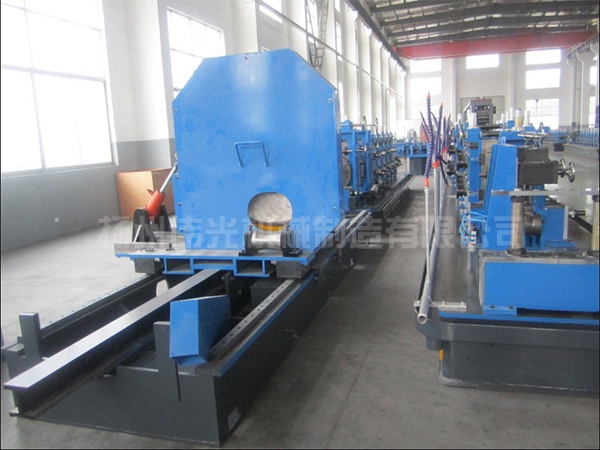 用途:是焊管生產線上的重要設備,它是在高速行進中自動精度定尺鋸切各種形狀的管材,由于采用了快速高精度的STD控制系統和機械系統,定尺及同步性能好,機械傳動可靠,所以本機具有快速性能好,精度高的特點。
