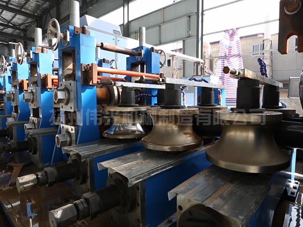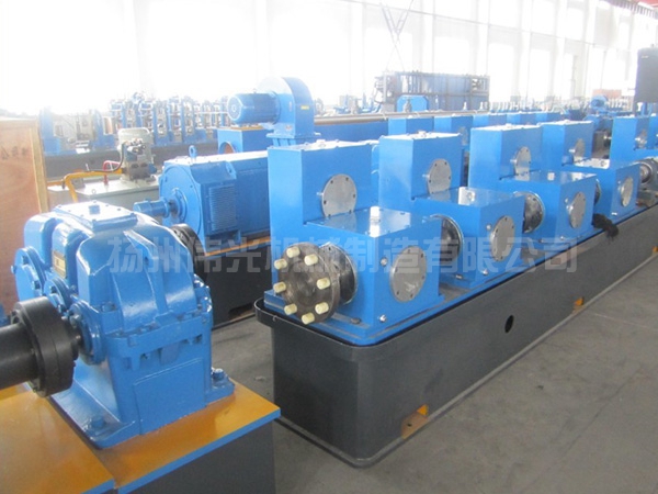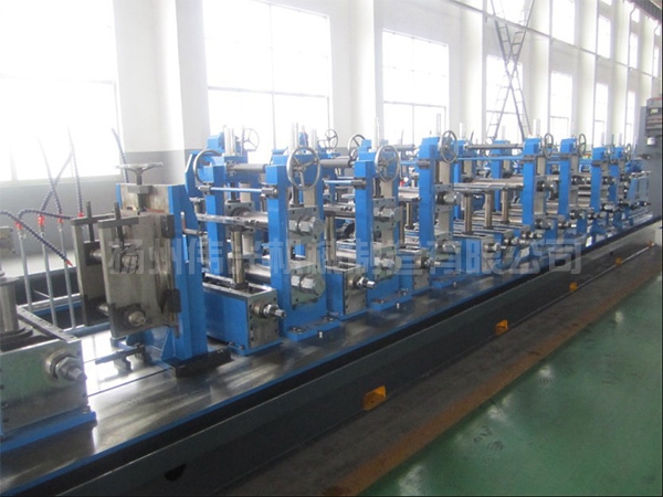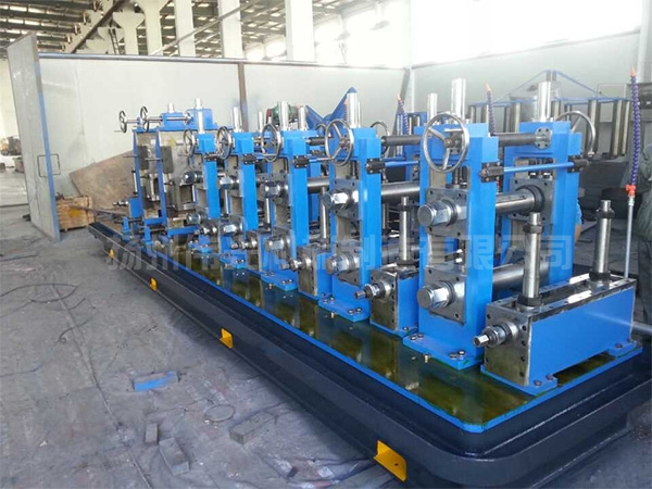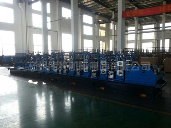 原料(帶鋼卷) →開卷動力矯平 →剪切對焊 →儲料 →被動校平→成型軋制 →高頻焊接→冷卻→定徑精整 →粗矯直→定尺切管 →收管捆扎