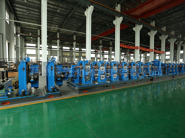 流程:上料→開卷→直頭→夾送矯平→剪切對(duì)焊→活套→成型、高頻擠壓焊接、去除外毛刺、焊縫磨光、定徑、粗矯直→飛鋸定尺→輥道→檢驗(yàn)收集→打包→稱重→標(biāo)記→入庫(kù)